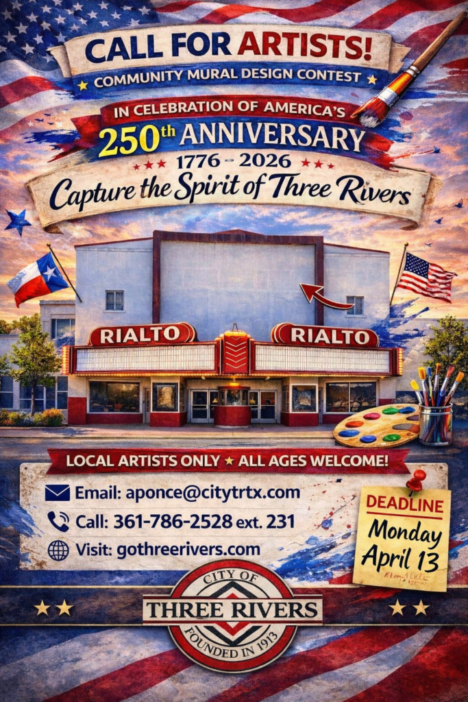 Three Rivers is located at the intersection of State Highway 72 and U.S. Highway 281, just south of the junction of the Atascosa and Frio Rivers and just north of the junction of the Frio and Nueces Rivers, hence the name THREE RIVERS, Texas. Three Rivers is nestled halfway between Corpus Christi and San Antonio. Making a short 70 mile drive south, you could be dipping your toes into the sparkling waters of the Gulf of Mexico. In the other direction, North, just 75 miles from Three Rivers you can visit the bustling city of San Antonio where you can experience the beauty of the famous San Antonio Riverwalk, take a historical tour of the Alamo, or trek a bit further north into the gorgeous, relaxing Hill Country.